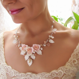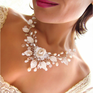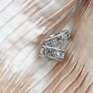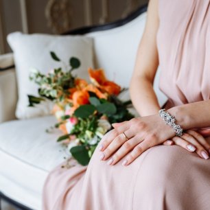 При выборе драгоценностей или свадебной бижутерии обязательно учитывайте цвет и фасон свадебного платья, а также наличие или отсутствие отделки. Украшения ни в коем случае не должны быть крупными, выглядеть дёшево и отвлекать от свадебного платья. А чрезмерное их количество может даже испортить весь тщательно продуманный образ. Например, идеально дополнят утончённый образ невесты небольшие серьги-пуссеты с бриллиантами. Несомненно, акцент следует делать на обручальном кольце, а не на браслете или других кольцах. А просто не допустимыми в свадебном образе являются часы и длинные массивные серьги. Также учтите, что если вы выбираете дорогое свадебное платье, стоит избегать бижутерии – она будет просто неуместной.
