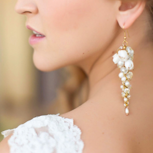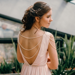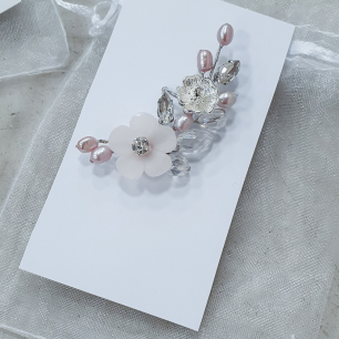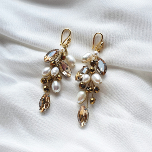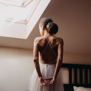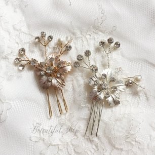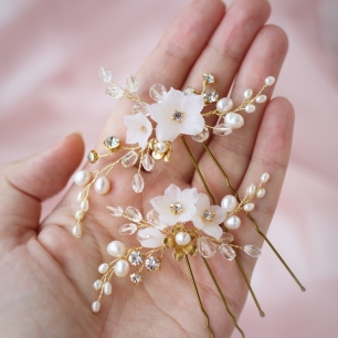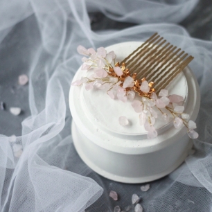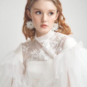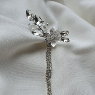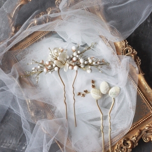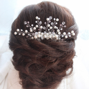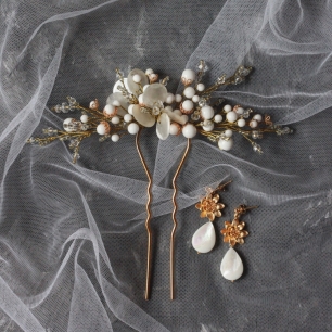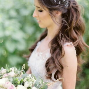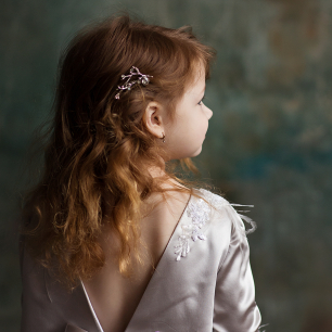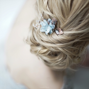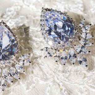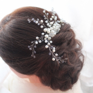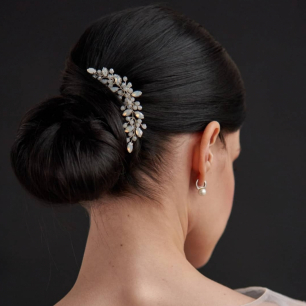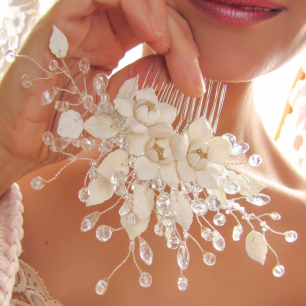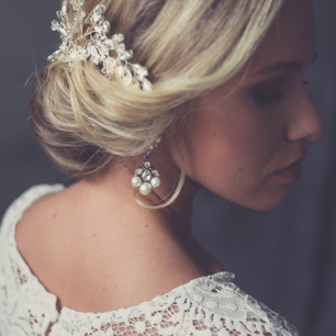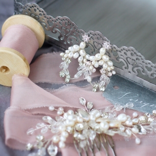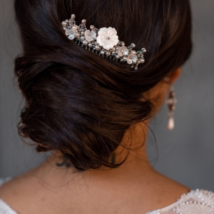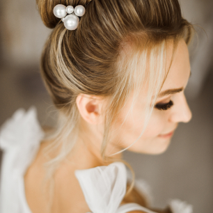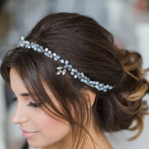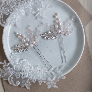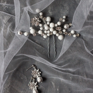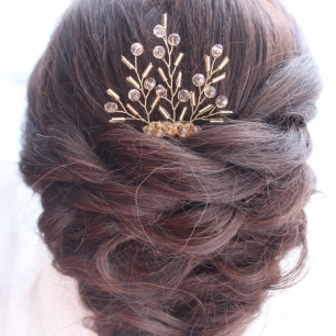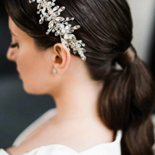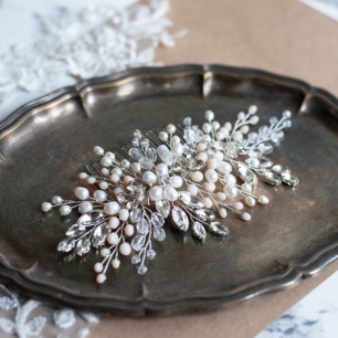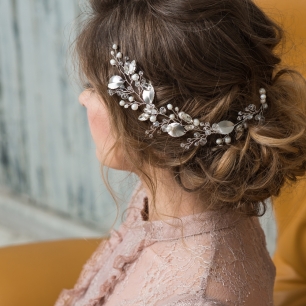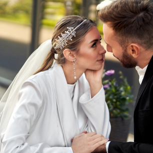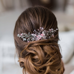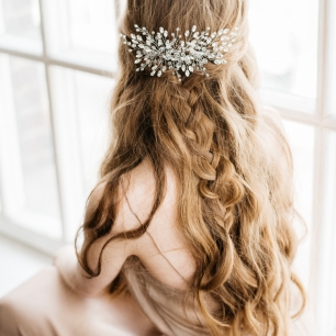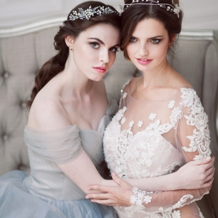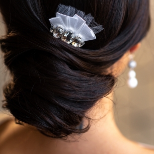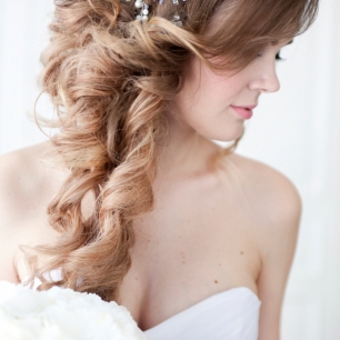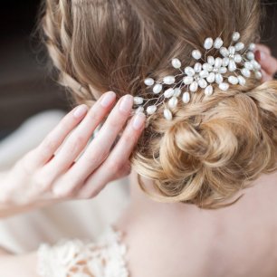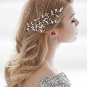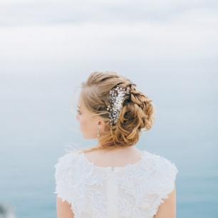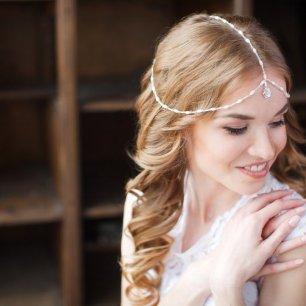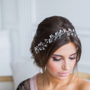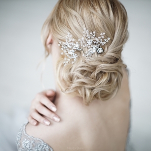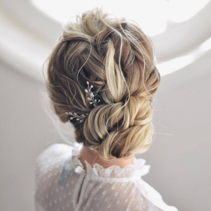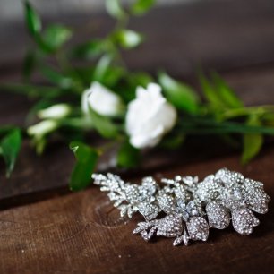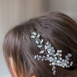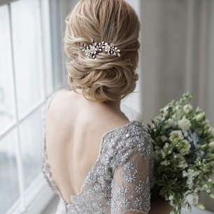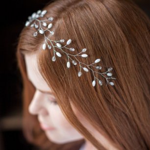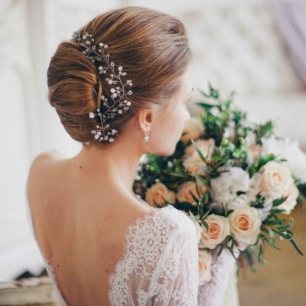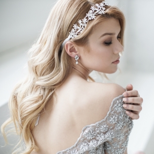 Но если невеста выбирает пышный подвенечный наряд, стоит ограничиться тонкими и деликатными украшениями. Так, к примеру, диадема подчеркнёт величественность и роскошность невесты. Также можно подобрать украшения для волос, например, гребешки или заколки с переливающимися кристаллами или полудрагоценными камнями. Правильно подобранные, они подчеркнут все достоинства свадебной причёски и не перегрузят образ.