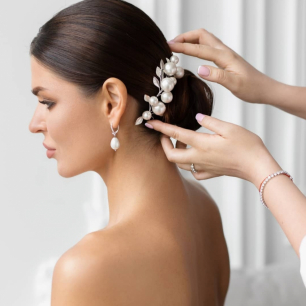 Образ невесты не будет столь эффектным, если не подобрать подходящую причёску и безупречный макияж. Также решающее слово остаётся за такими деталями, как, к примеру, фата или украшения для волос, серьги, ожерелье. При этом платье и свадебные аксессуары должны гармонично сочетаться между собой: украшения не должны выделяться, их первостепенно важная задача – дополнять изысканный подвенечный наряд и придать образу необходимое настроение.