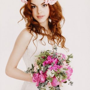 Особой популярностью для свадебных фотосессий пользуются венки из ярких крупных или мелких цветов и листьев. Свадебные венки всегда выглядят очень нежно и добавят женственному образу невесты чувственности, а также придадут невероятную трогательность.